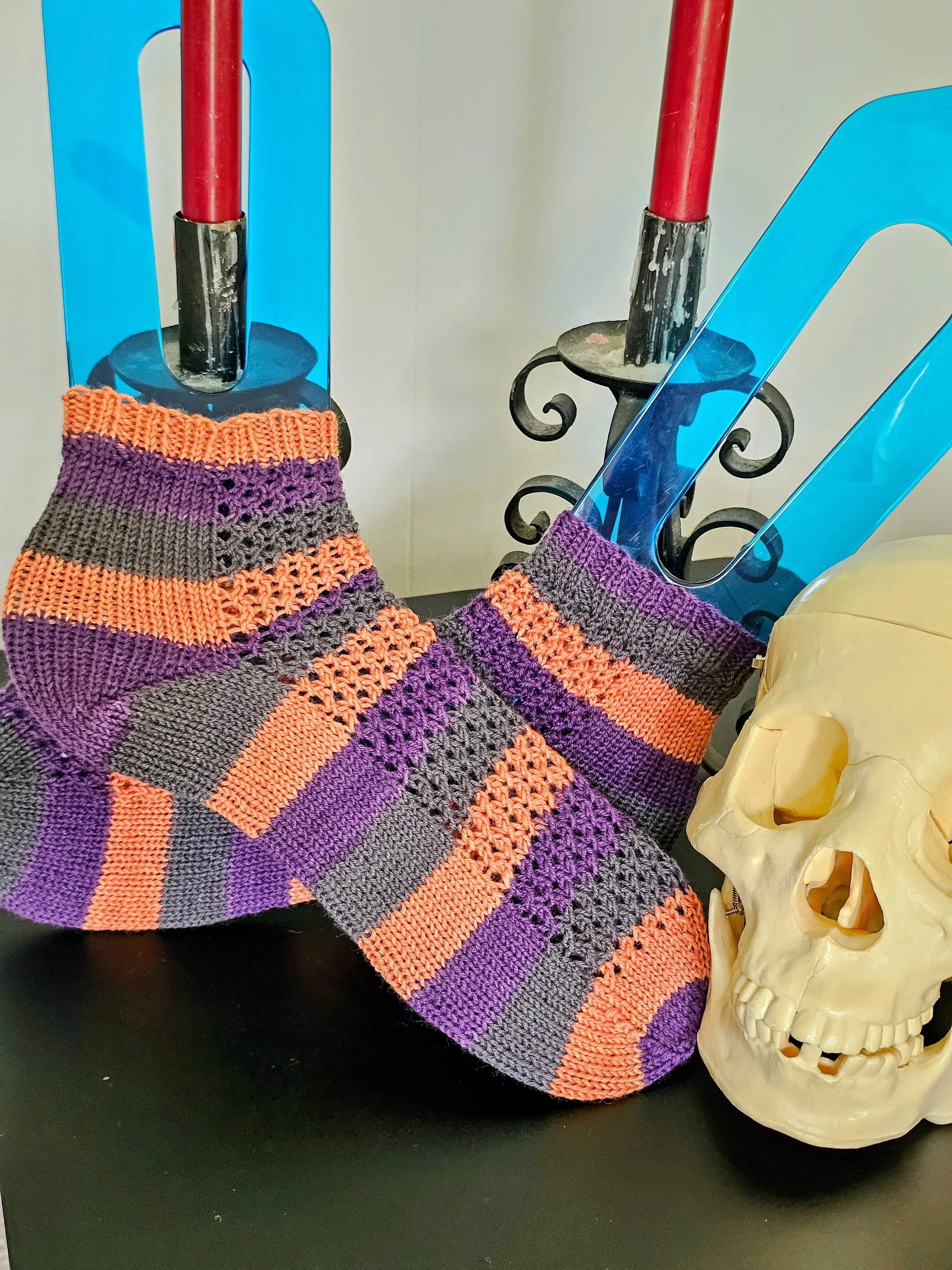 Use any yarn to knit the Monster Mesh socks or scarf during the month of October for a chance to win a bag made by Amie!