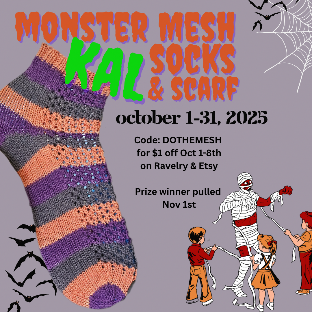 The Monster Mesh KAL, it’s a graveyard smash! Amie of Happy Little Yarn and I have gotten carried away by this pattern and started a knit-a-long. We are so excited to share this spooky season with y’all!